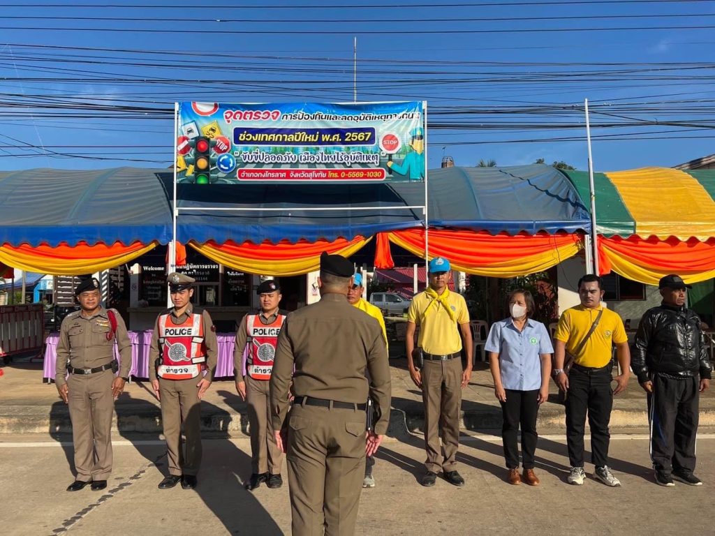 อบรมปล่อยแถวชี้เเจงมอบหมายภารกิจให้กับเจ้าหน้าที่ตำรวจ เจ้าหน้าที่สาธารณสุข เจ้าหน้าที่ฝ่ายปกครอง อาสากู้ภัย ประจำจุดบริการประชาชน ช่วงเทศกาลปีใหม่ 2567 ณ ศูนย์จราจรบ้านกร่าง