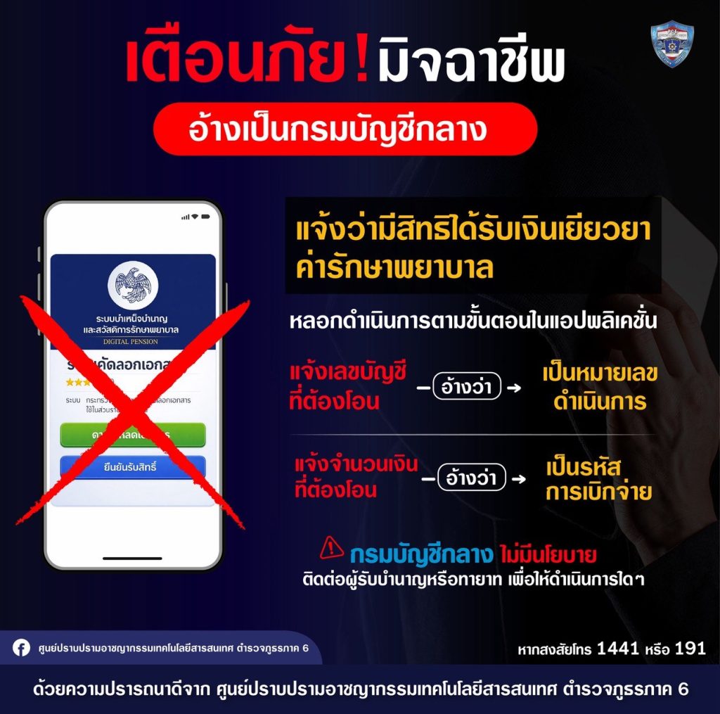 เตือนภัย! มิจฉาชีพอ้างเป็นกรมบัญชีกลาง 16 กุมภาพันธ์ 2569 โดย admin / ข่าวประชาสัมพันธ์,ข่าวกิจกรรม,ข่าวประชาสัมพันธ์,ข่าวประชาสัมพันธ์,ข่าวฝากประชาสัมพันธ์ FacebookFacebookXXLINELine