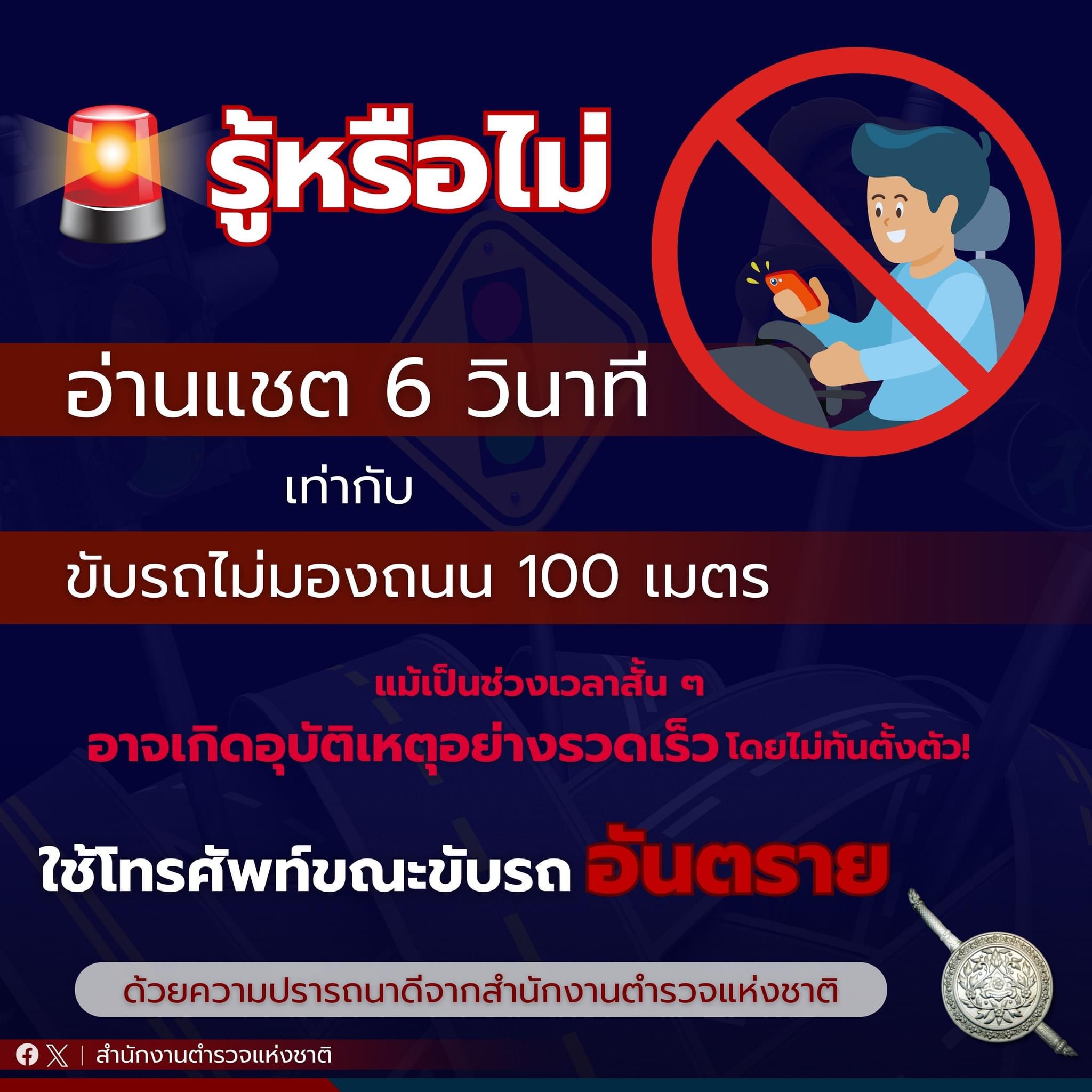 ขับไม่แชต ⚠️📵 🚨รู้หรือไม่ ทุกครั้งที่ท่านใช้โทรศัพท์มือถือระหว่างขับรถ มีความเสี่ยงเกิดอุบัติเหตุ ทุ