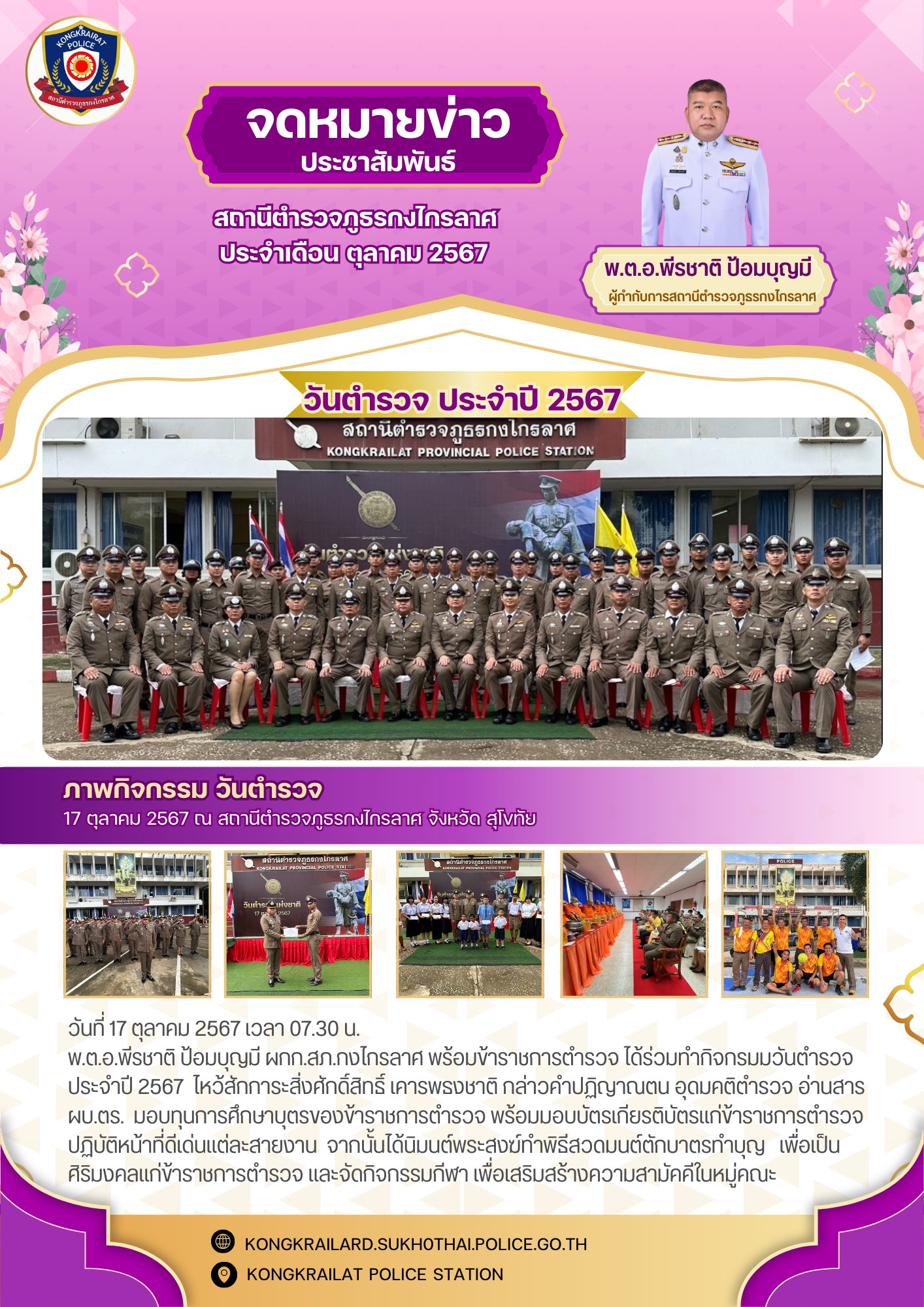 วันนี้ (17 ต.ค. 67) เวลา 07.30 น. พ.ต.อ.พีรชาติ ป้อมบุญมี ผกก.สภ.กงไกรลาศ พร้อมข้าราชการตำรวจ สภ.กงไ