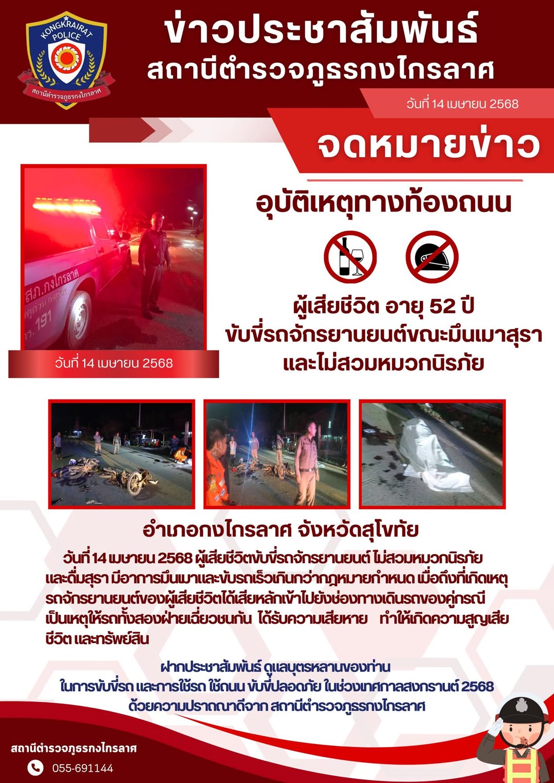 วันนี้ 30 เม.ย.68 เวลา 11.00 น. พ.ต.อ.ณัทรภณ ทรงไทย ผกก.สภ.กงไกรลาศ พร้อมด้วยข้าราชการตำรวจสถานีตำรว