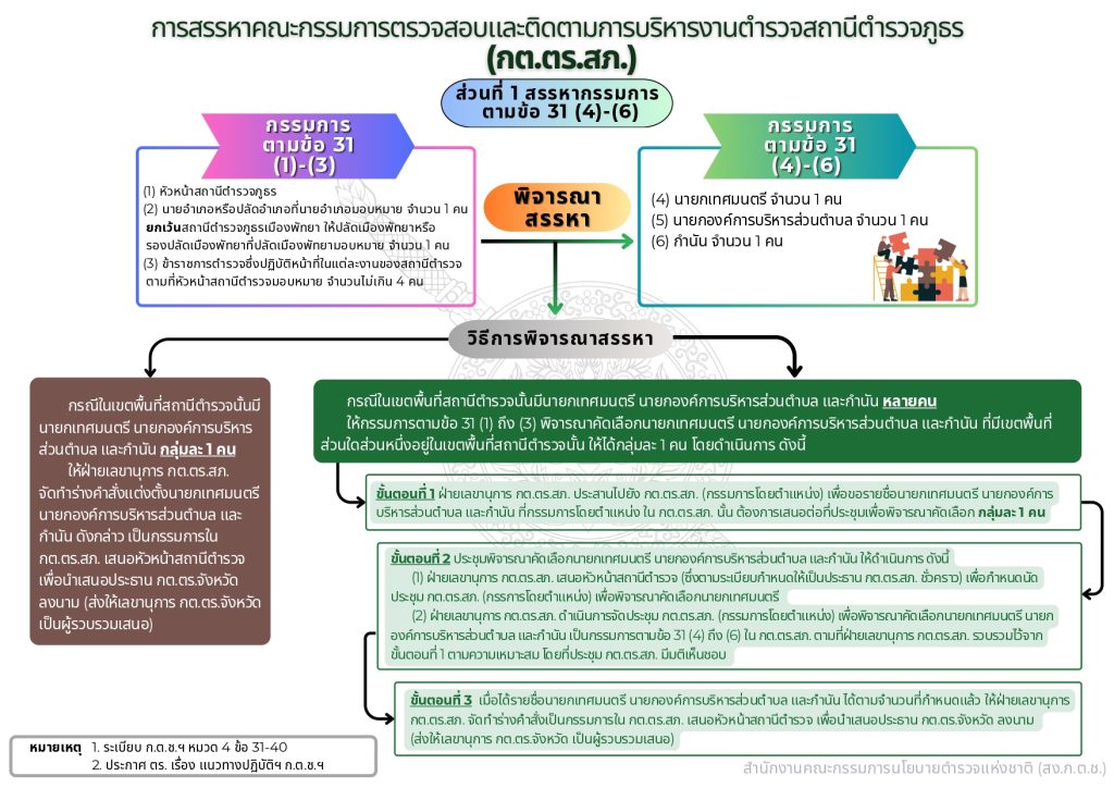 (4)ตรวจสอบ ติดตาม และประเมินผลการปฏิบัติงานของข้าราชการตำรวจในสถานีตำรวจ ให้เป็นไปตามนโยบายของ ก.ต.ช.