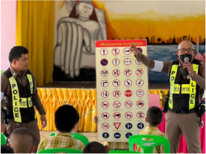 วันที่ 6 มีนาคม 2568 พ.ต.ท.สุทัศน์ คำถาเครือ รอง ผกก.ป. สภ.กงไกรลาศ หมอบหมายให้ข้าราชการตำรวจงานจราจร บรรยายให้ความรู้เกี่ยวกับกฎหมายจราจร และการขับขี่ปลอดภัยให้กับเด็กนักเรียน ในโครงการนักเรียนรุ่นใหม่มีใบอนุญาตขับขี่ ณ หอประชุมโรงเรียนไกรในวิทยาคม รัชมังคลาภิเษก